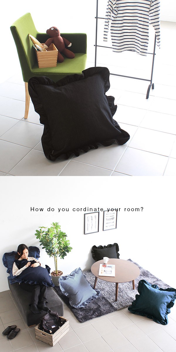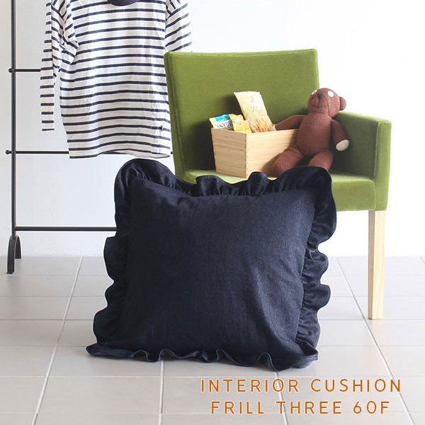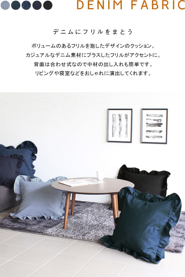 クッション 大きい デニム 西海岸 60×60 正方形 おしゃれ 日本製 北欧 フリル 》