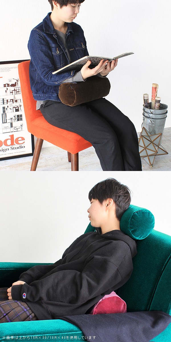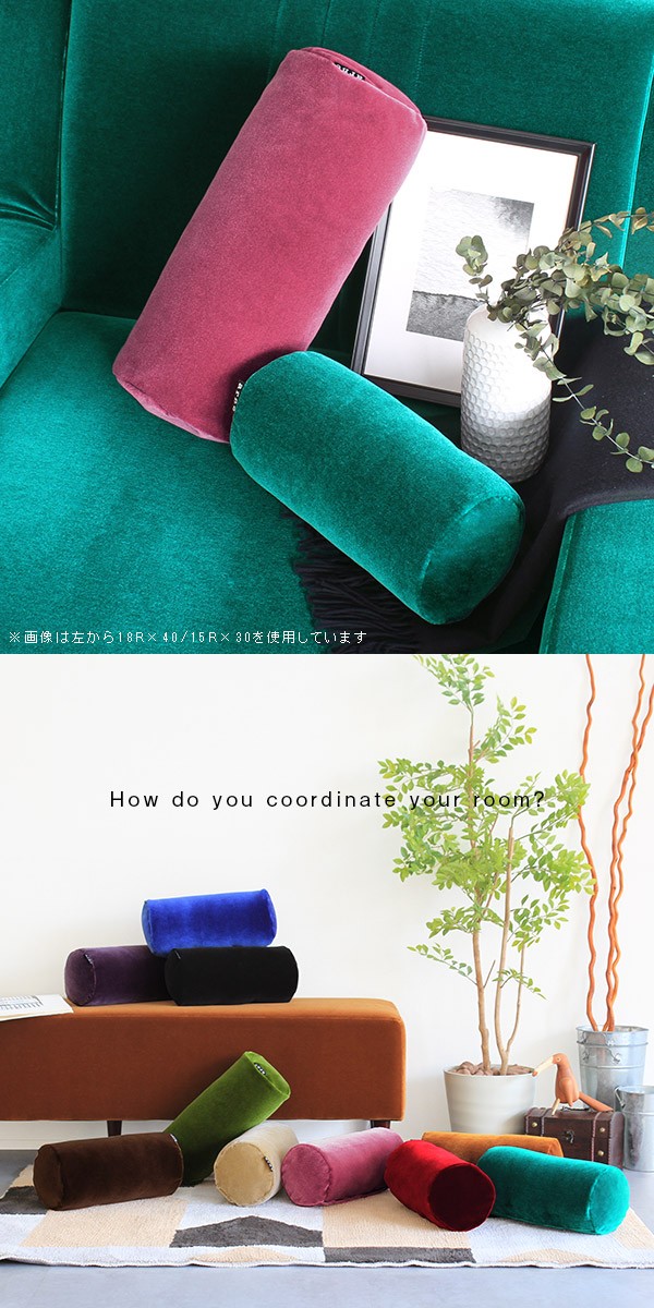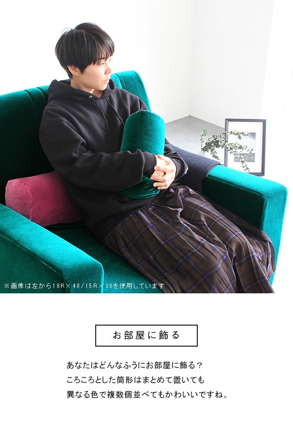 クッション かわいい 30cm 中材入り 無地 筒形 椅子 オフィス カラフル グリーン 赤 ブラウン ピンク ベージュ ブルー ブラック 紫 》