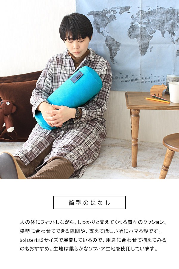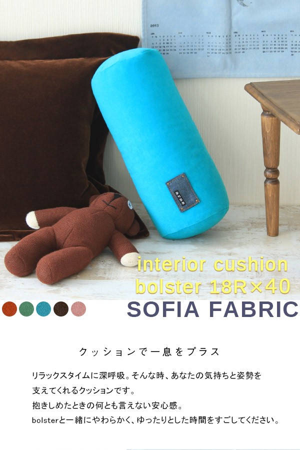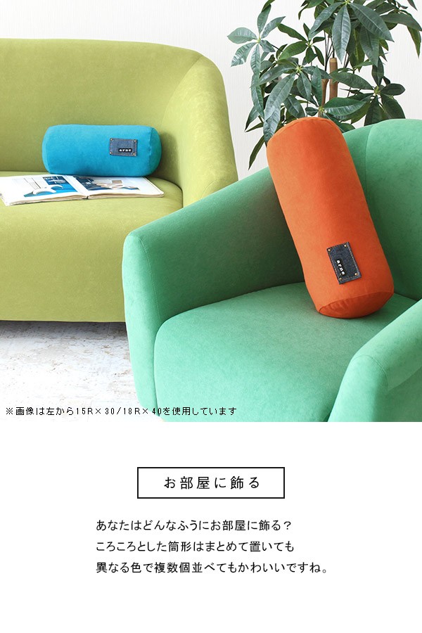 クッション かわいい 40cm 中材入り 筒形 interior cushion bolster 18R×40 カラフル 癒し 日本製 無地 》