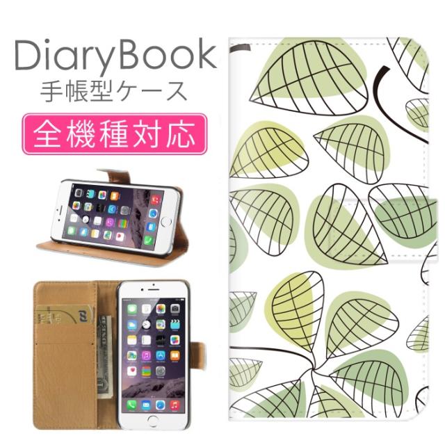 スマホケース 手帳型 全機種対応 GRATINA KYV48 AQUOS sense5G SHG03 Xperia 5 II SOG02 ケース 手帳型 木の葉 自然 アート シャーベット リバティグリーン 緑 リーフパターン 総柄 イラスト 韓国