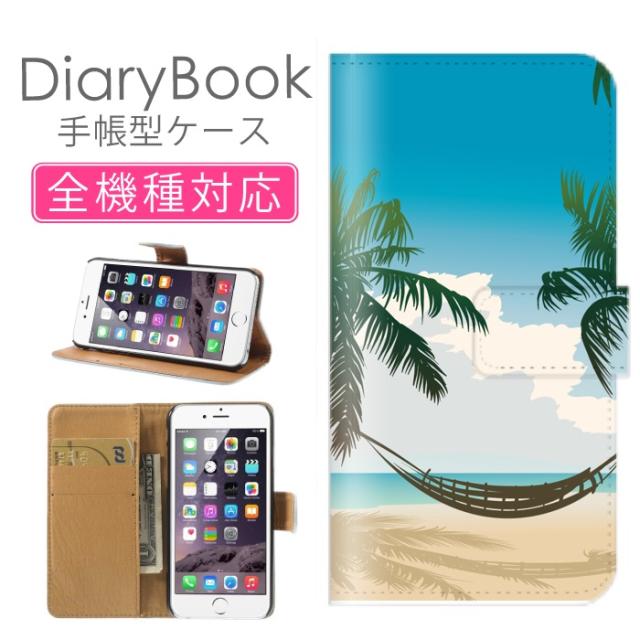 スマホケース 手帳型 全機種対応 アンドロイド対応 Galaxy A51 5G SCG07 Xperia 1 III SOG03 ケース 海 ヤシの木 バカンス 南国 ハワイアンサーファーハンモック リゾート 積乱雲休暇 夏休み サーフィン 韓国