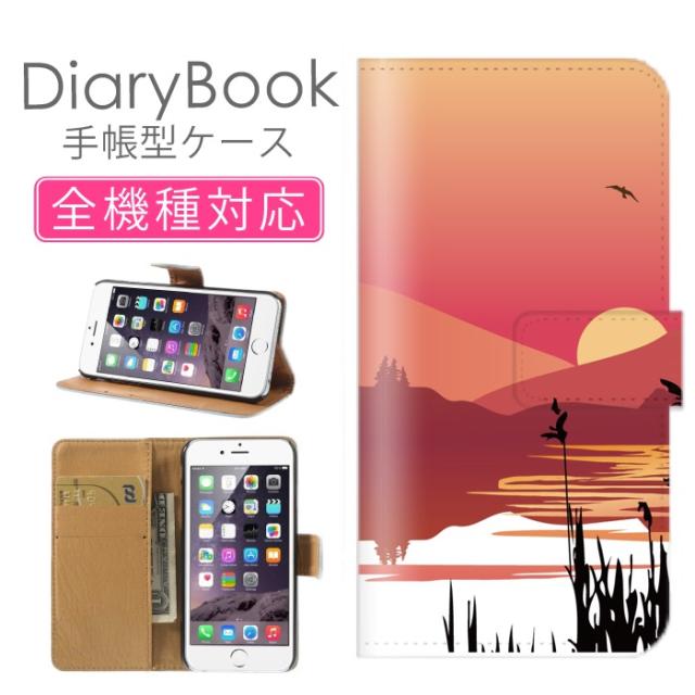 スマホケース 手帳型 全機種対応 アンドロイド対応 Galaxy A51 5G SCG07 Xperia 1 III SOG03 ケース 風景 背景 イラスト 夕日 自然 海 飛行機 緑山 川 海 大地 空 湖 石小川 上流 下流 河川 韓国