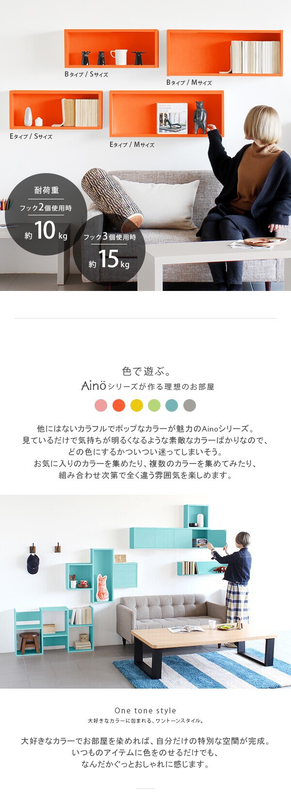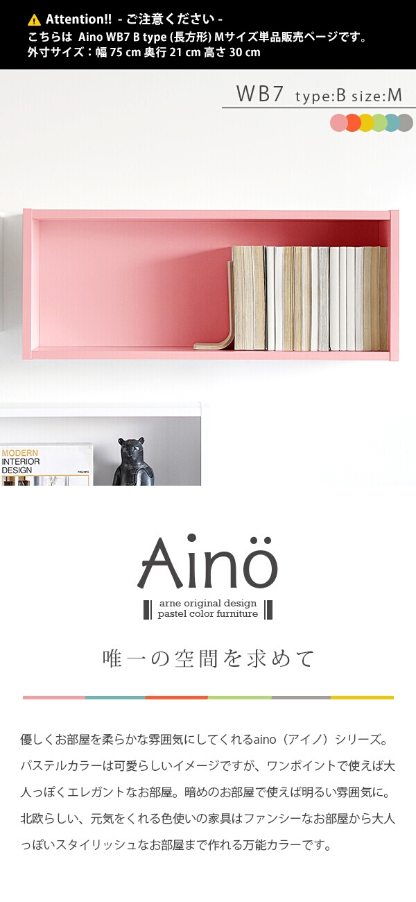 ウォールシェルフ ウォールラック 壁掛け 棚 石膏ボード 木製 おしゃれ 北欧 本棚 パステルカラー かわいい Aino WB7 B 単品M ★