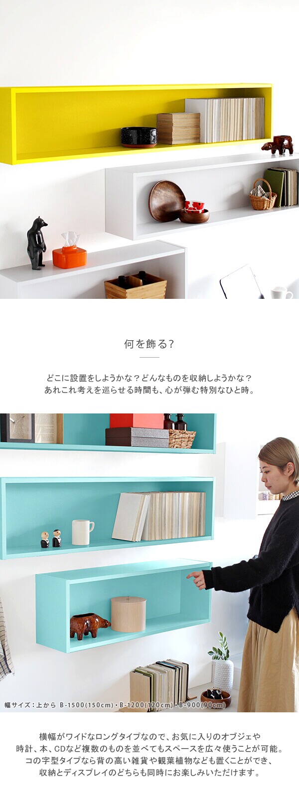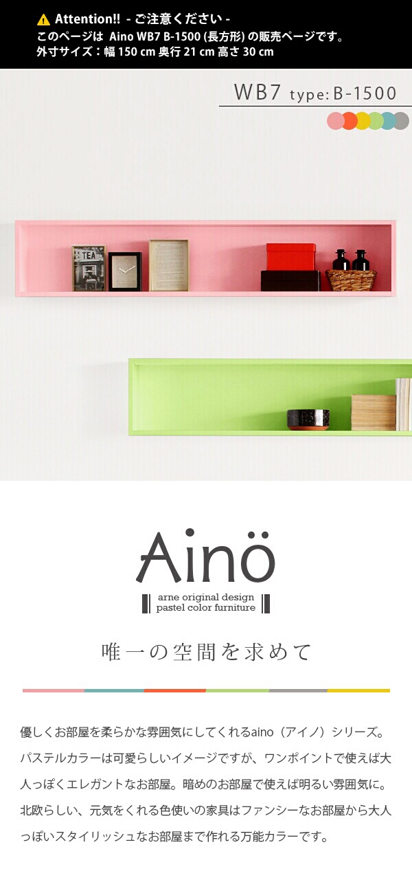 ウォールシェルフ ウォールラック 壁掛け 棚 飾り棚 キッチン ウォールボックス パステルカラー かわいい Aino WB7 B-1500 ☆
