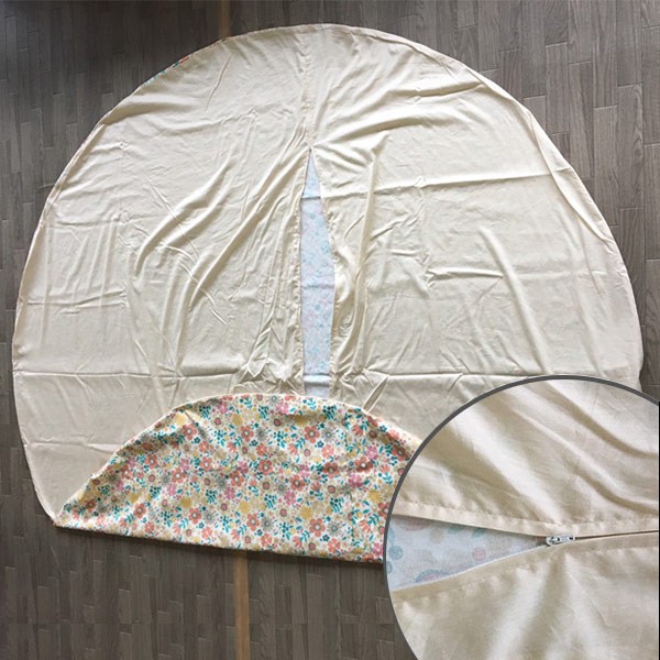 素材にこだわり、表生地と裏生地は綿を100%使用していて、国内生産をしております。お部屋の雰囲気や気分でお好きな柄に取り換えられます。直径210cmの円形タイプのふとんカバーです。