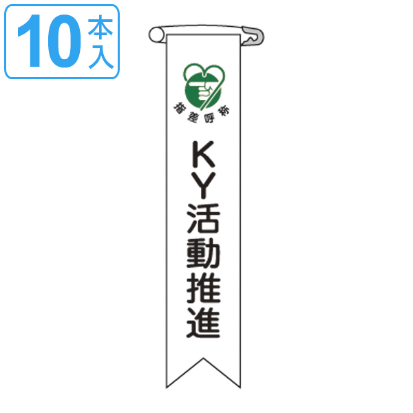 ビニールリボン リボン−19 「 KY活動推進 」 10本1組 りぼん 日本製 ( ビニール 胸章 ワッペン 啓発 ビニール製 メッセージ 安全ピン付き 注意喚起 注意 喚起 明示 作業 現場 作業員 見やすい 安全用品 安全 用品 グッズ )