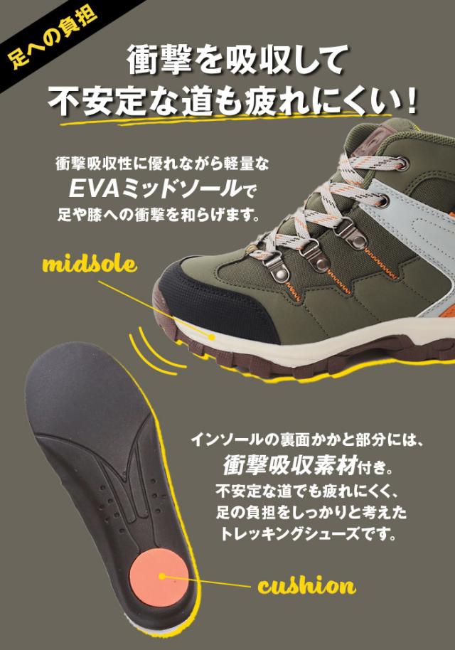 | 商品説明 | ・本格的なハイキングやアウトドアに対応できる、albatre(アルバートル)のキッズトレッキングシューズ。 ・深溝のアウトソールで、グリップ感が抜群!トレッキングはもちろん、川遊びなど水辺でのアクティビティでも滑りにくく、お子さまを転倒から守る。 ・衝撃吸収性に優れた合成樹脂製のミッドソールで、お子さまの足や膝への衝撃を和らげる。しっかりとしたつくりなのに軽量なのも嬉しい。 ・背面かかと部分に、夜間でも安心な反射素材付き。すれ違う車からの視認性が高くなり、アウトドア使用時のみならず、秋冬時期の薄暗い下校時刻でもママパパ安心のシューズ。 ・成長期のお子様に嬉しい、サイズ調整用インソールが付属。インソールを使用することでサイズ感を0.5cm調整可能。 ・防水・透湿性の高い素材を使用。足の甲やかかとに当たる部分は、ムレにくく、クッション性の高いメッシュ素材を採用。(完全防水ではありません) |
