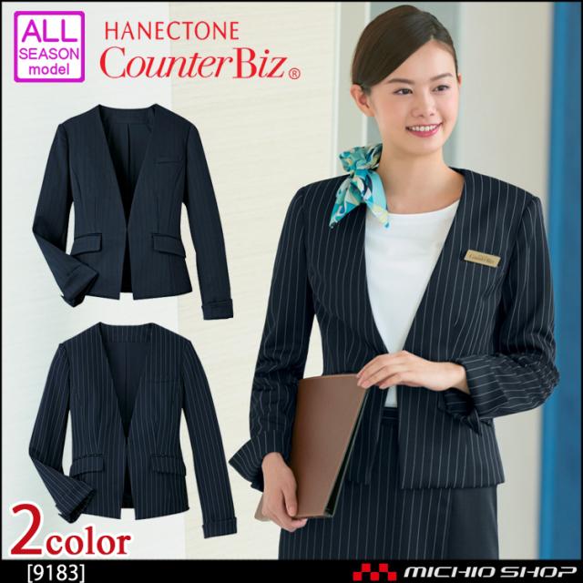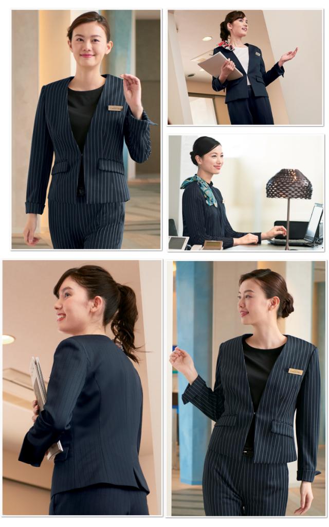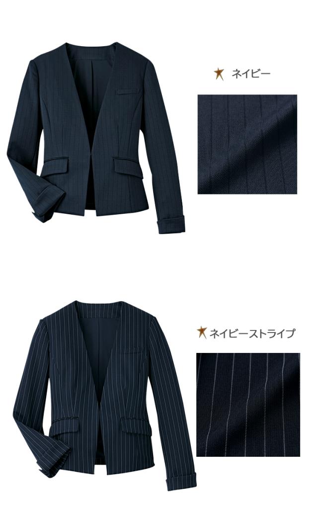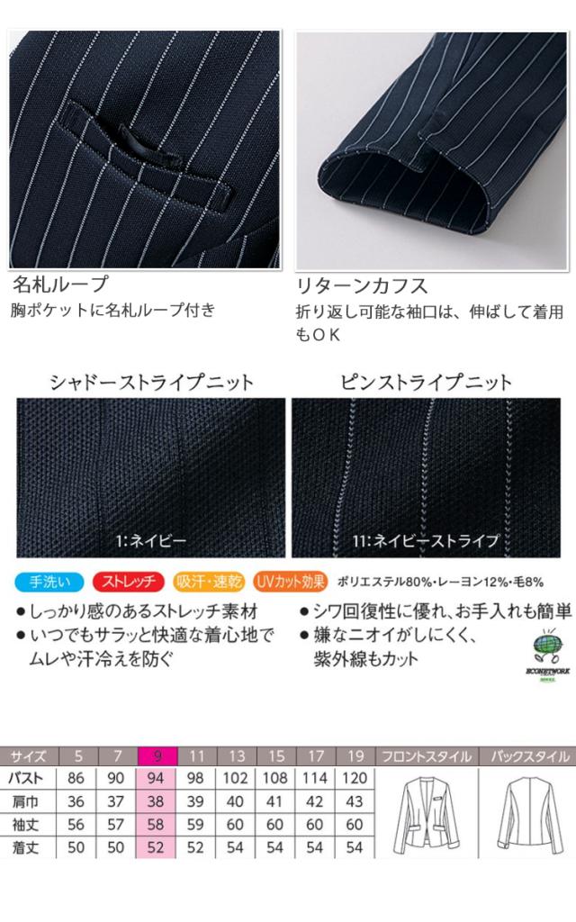 おもてなし制服 受付 ハネクトーン ノーカラージャケット 9183 ストライプニット