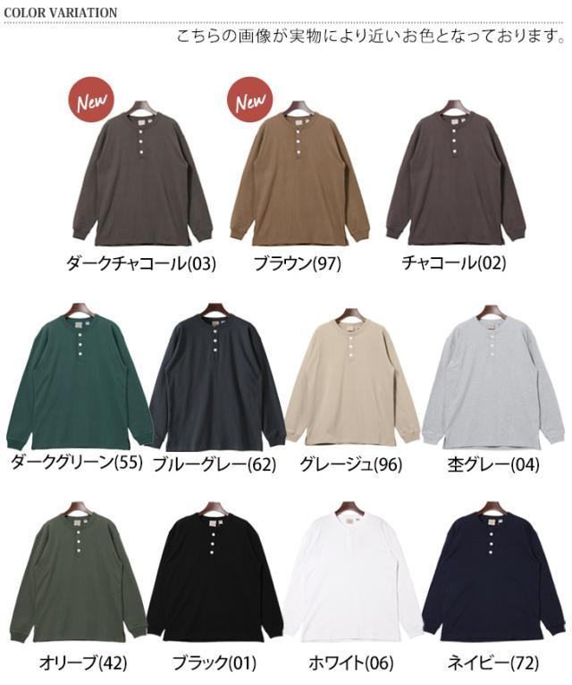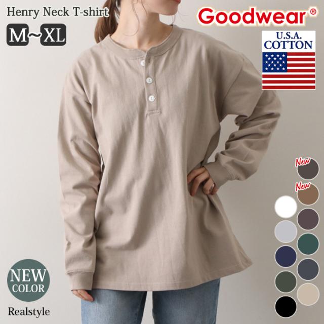 秋新作 グッドウェア Goodwear ヘンリーネック Tシャツ メンズ レディース 7.6oz 7.6オンス 長袖 ロンT 綿100% コットン ロングスリーブ トップス カットソー ブランド おしゃれ 無地 大きいサイズ M L XL ファッション 二の腕カバー お尻カバー ロング丈 ロングTシャツ