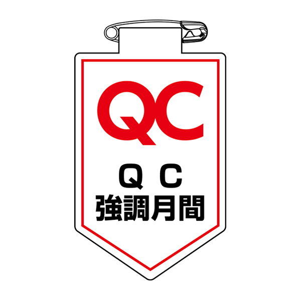 ビニールワッペン 胸37 ワッペン 「 QC 強調月間 」 ビニール ラミネート加工 日本製 ( 胸章 職務 名札 ビニール製 安全ピン付き 明示 作業 現場 作業員 見やすい 安全用品 安全 用品 グッズ )
