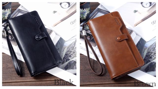 1 長財布 財布 レザー 革 札入れ 小銭入れ カード入れ 収納ケース スナップボタン 4 ジップ ファスナー ストラップ ブラック ブラウン