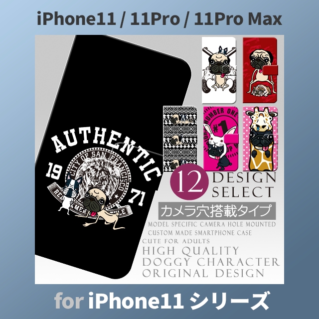 iPhone11 ケース カバー スマホ 手帳型 iPhone11 Pro Max au 犬 ワンちゃん 絵 dc-om-010