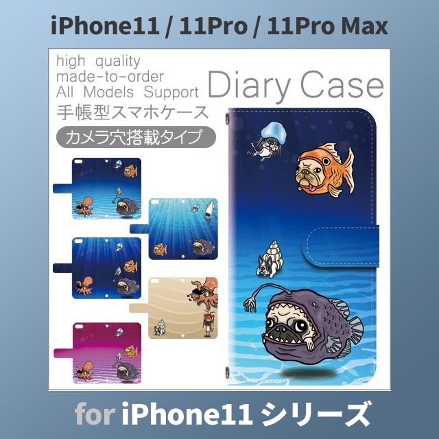 iPhone11 ケース カバー スマホ 手帳型 iPhone11 Pro Max au 犬 ワンちゃん 海 dc-186