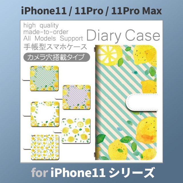 iPhone11 ケース カバー スマホ 手帳型 iPhone11 Pro Max au レモン ストライプ dc-642