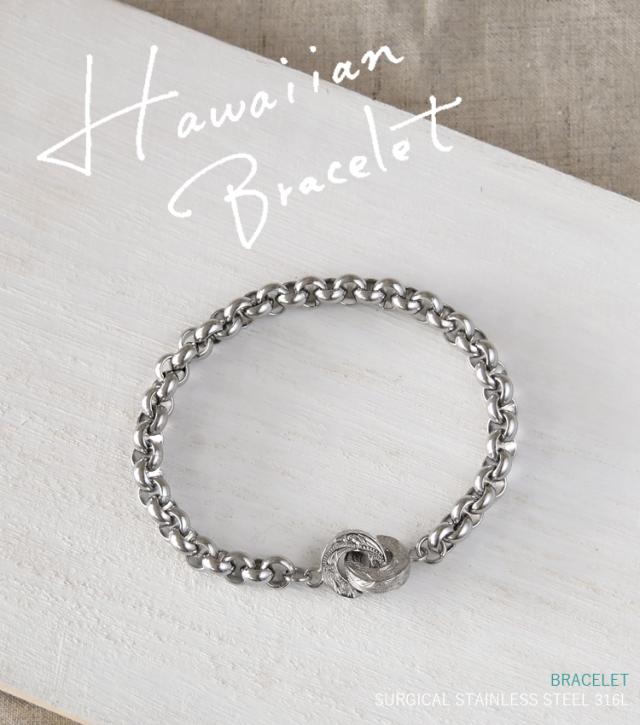 ハワイアンジュエリー ブレスレット メンズ ステンレス 金属アレルギー対応 サージカルステンレス316L インフィニティ ∞ 無限大 スクロール スティールシルバーカラー (gbss145st)