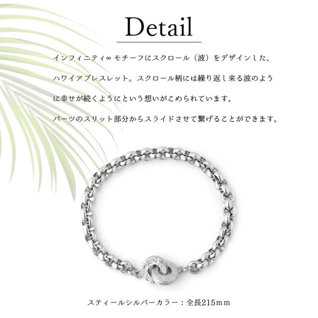 ハワイアンジュエリー ブレスレット メンズ ステンレス 金属アレルギー対応 サージカルステンレス316L インフィニティ ∞ 無限大 スクロール スティールシルバーカラー gbss145st