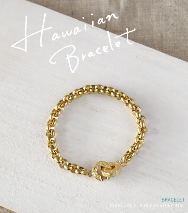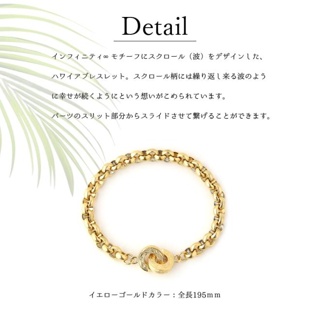 ハワイアンジュエリー ブレスレット レディース ステンレス 金属アレルギー対応 サージカルステンレス316L インフィニティ ∞ 無限大 スクロール イエローゴールドカラー gbss145yg