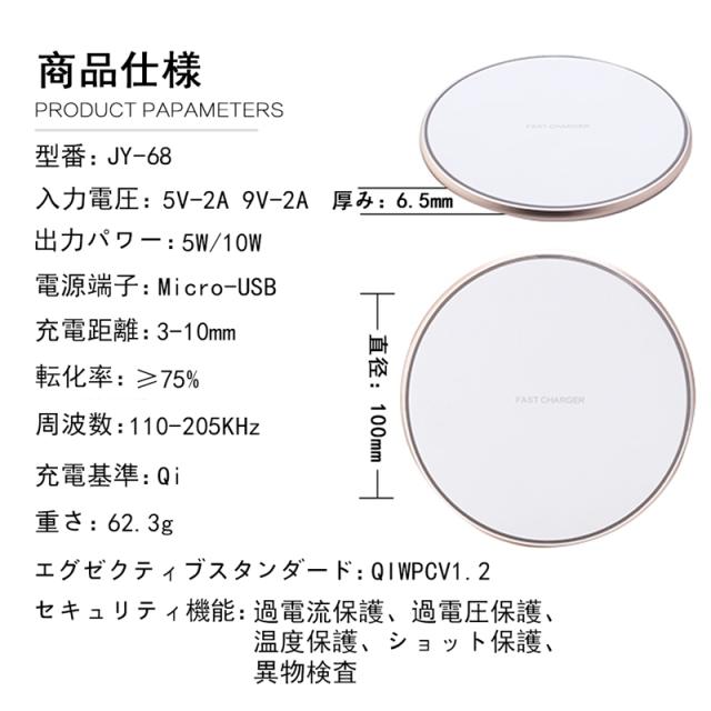 【パッケージ内容・3ヶ月保証あり】ワイヤレス充電器本体*1、Micro USBケーブル*1、取扱説明書、3ヶ月保証(※注文番号が保証書の代わりとなります)、カスタマーサポート。