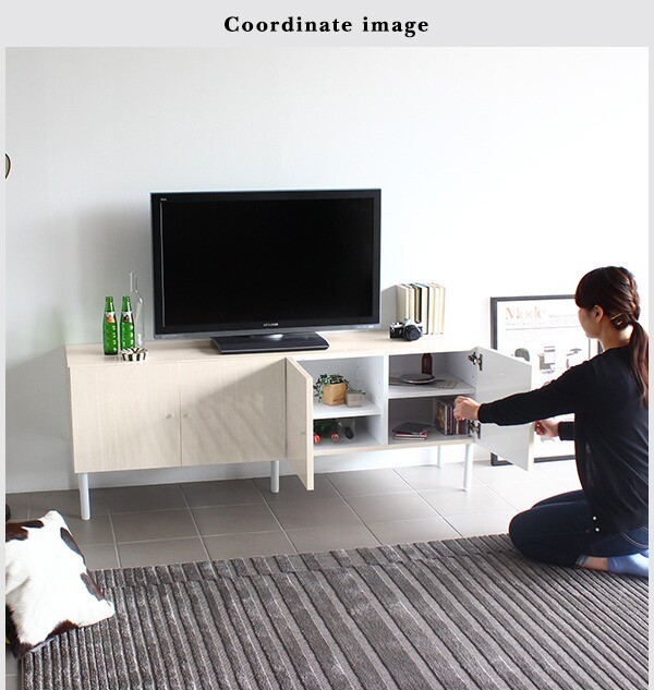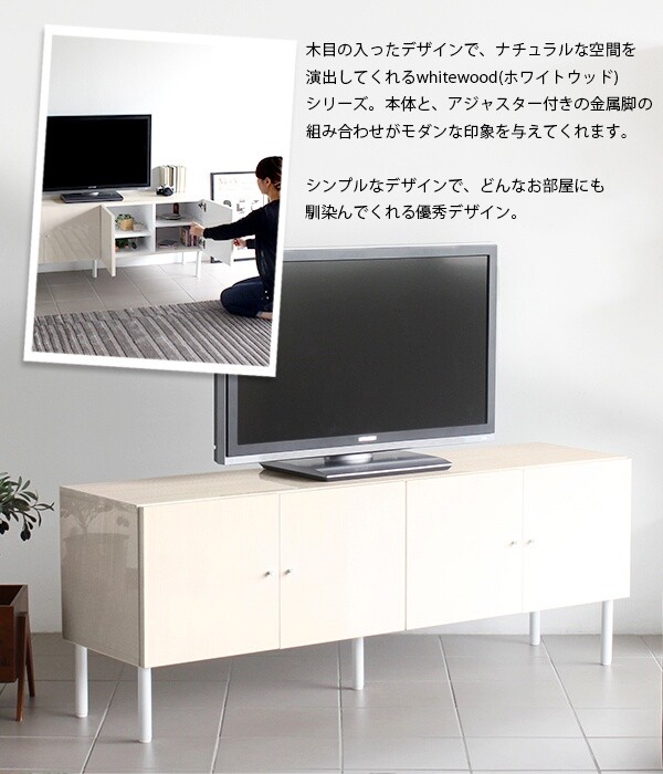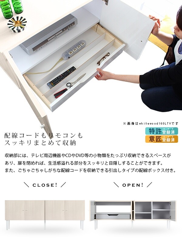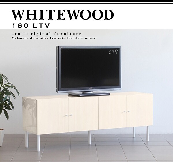 テレビ台 鏡面 おしゃれ 木目 ローボード ホワイトウッド 160 脚付き サイドボード リビング whitewood 160LTV ☆