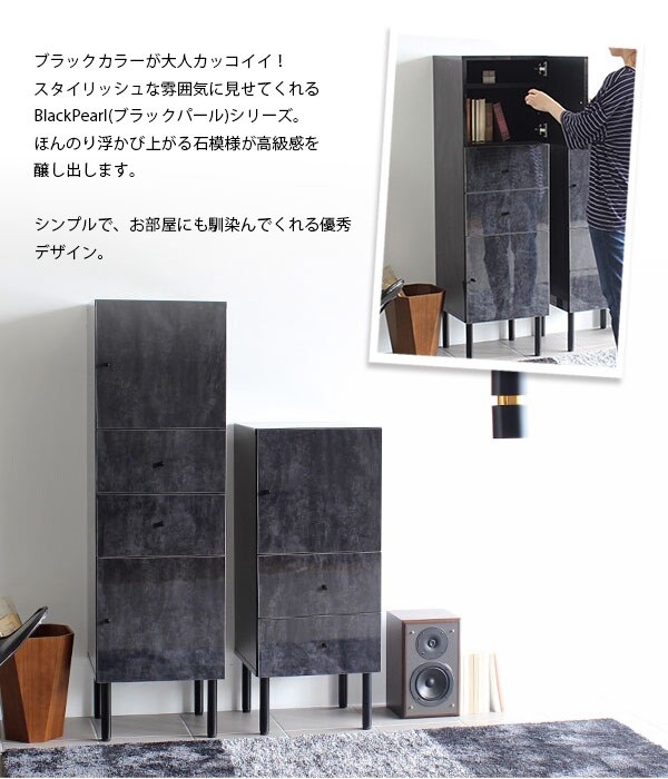 キャビネット リビング収納 ハイタイプ 完成品 ブラック チェスト スリム キッチン 収納 おしゃれ 家具 鏡面 黒 BP 40M chest cabi ☆
