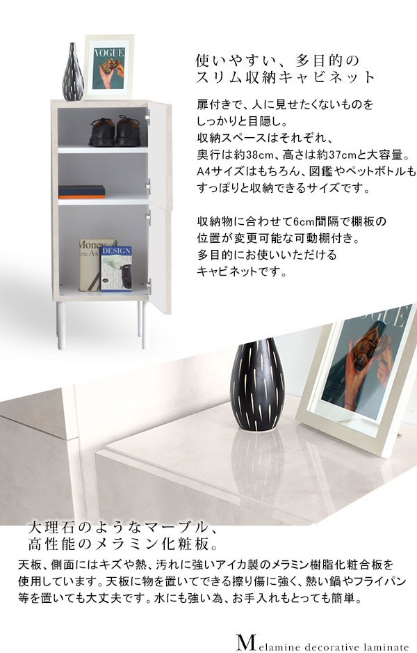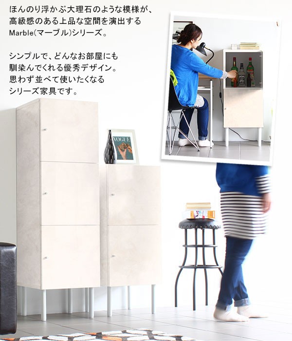 キャビネット 家具 白 鏡面 チェスト 大理石風 ホワイト 高級 リビングキャビネット スリム おしゃれ marble 40L cabi ☆