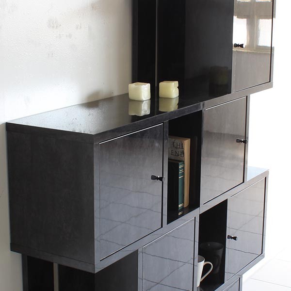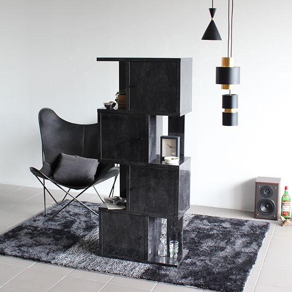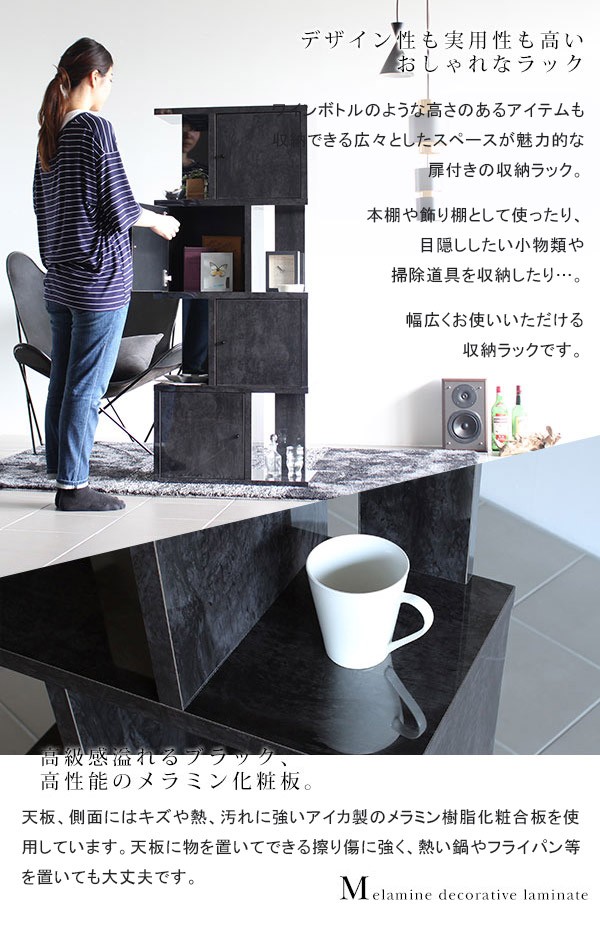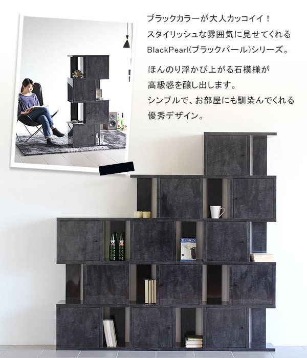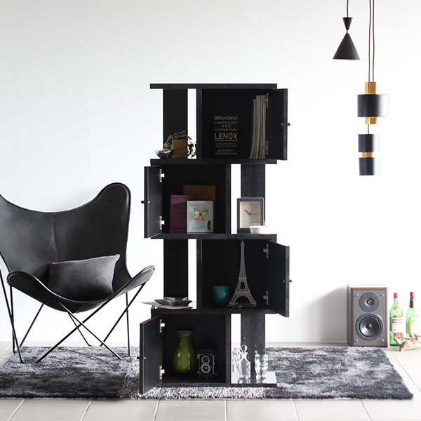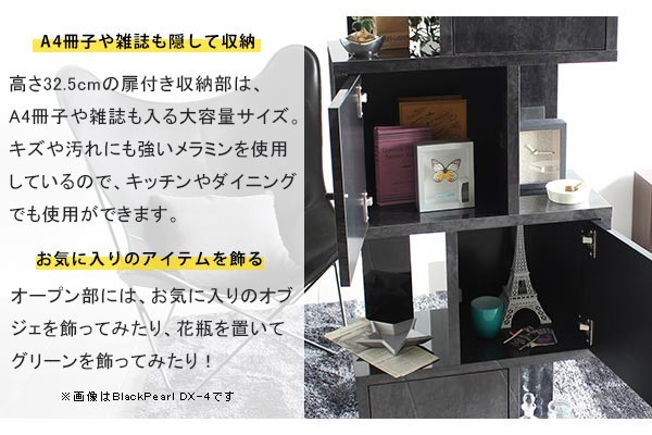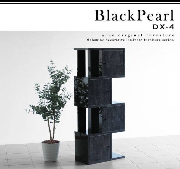 オープンシェルフ S字ラック 扉付き 4段 飾り棚 ディスプレイラック おしゃれ 家具 鏡面仕上げ 黒 ブラック BP DX-4 ☆
