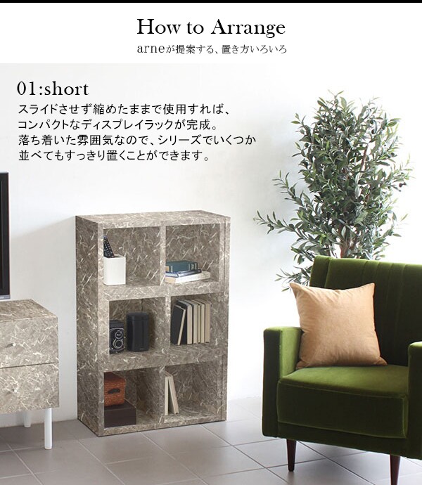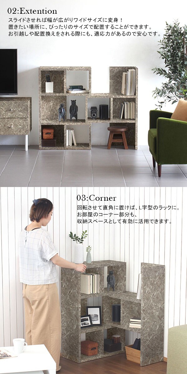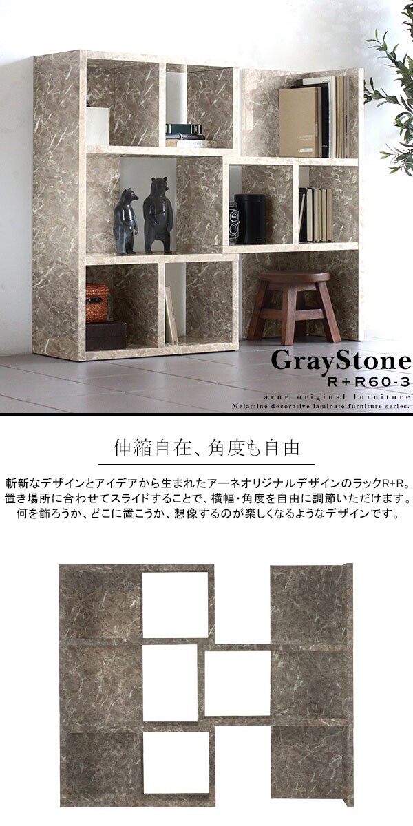 オープンシェルフ 3段 おしゃれ オープンラック コーナーラック 伸縮ラック 大理石風 モダン graystone R+R 60-3 ☆
