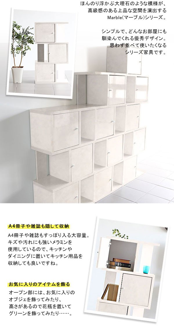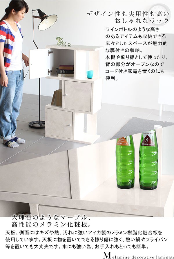 オープンシェルフ ディスプレイ 3段 S字ラック 扉付き 鏡面仕上げ 家具 幅60 白 ホワイト 大理石風 おしゃれ marble DX-3 ☆