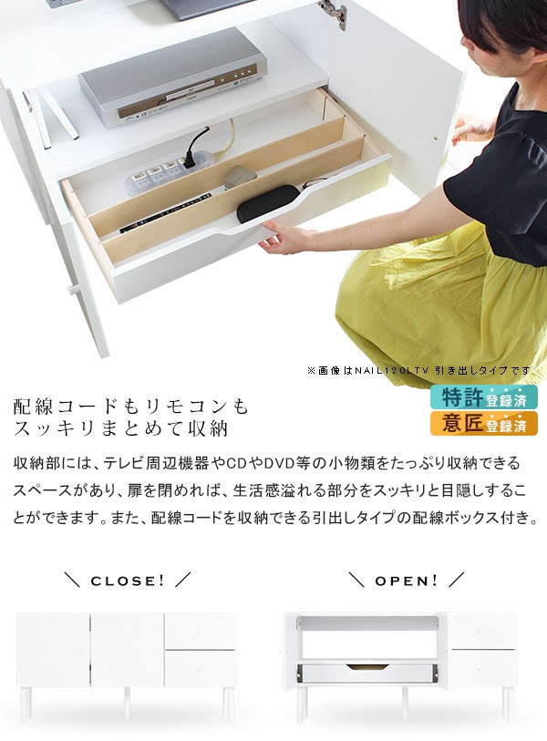 テレビボード ホワイト 鏡面 完成品 テレビ台 鏡面仕上げ 家具 TV台 120 おしゃれ 収納付き nail 120LTV+C ☆