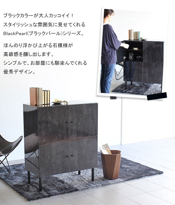 キャビネット ローキャビネット 北欧モダン リビング収納 幅80 鏡面 ブラック チェスト 黒 おしゃれ BP 80L cabi ☆