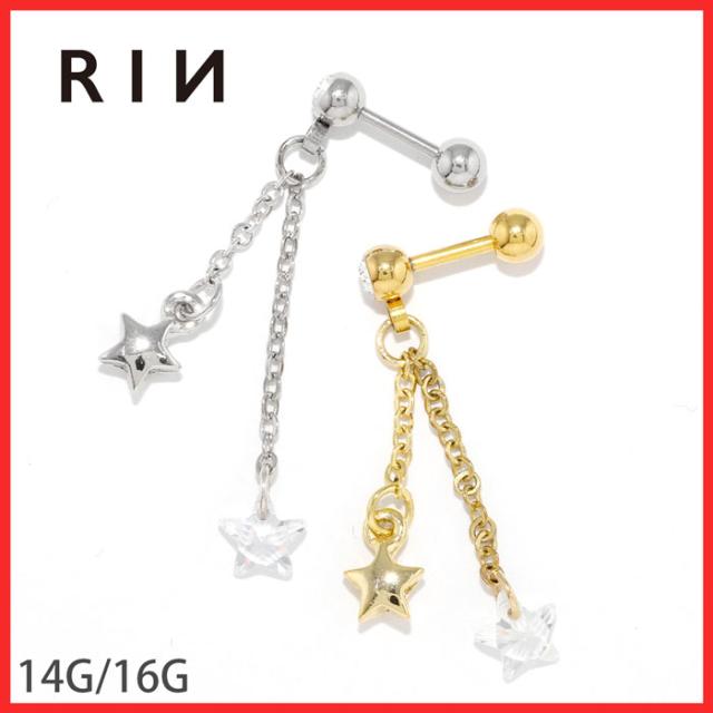 軟骨ピアス かわいい 星 スター ジュエル チャーム チェーン クリスタル オリジナル ストレートバーベル 14G 16G ボディーピアス 軟骨 ピアス ステンレスゴールド ごーるど 金 キン きん シルバー しるばー 銀 ギン ぎん かわいい カワイイ 可愛い 女子力 フェミニン プレゼント ラブリー 14ゲージ 16ゲージ スター ほし ホシ 宇宙 コスモ 耳 耳たぶ 軟骨用 なんこつ ピアス 金属 アレルギー 対応 アクセサリー 金属アレルギー 通販 おすすめ ポイント消化 凛 ボディピアス専門店 りん オリジナル0191「BP」「NAN」「chain」 t8262-163