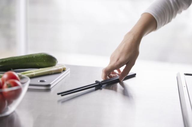キッチントップやテーブルに横置きできる菜箸の先を浮かせて置ける菜箸キーパー付き。直置きにならないので衛生的。