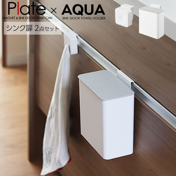 山崎実業 ごみ箱 シンク扉 ゴミ箱&タオルホルダー 2点セット ホワイト | タオルホルダー タオル掛け シンク扉 マグネット