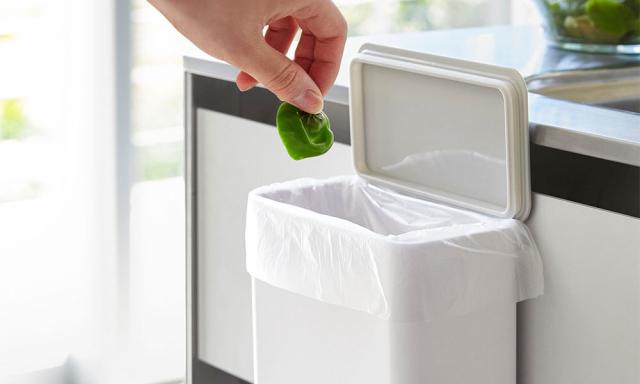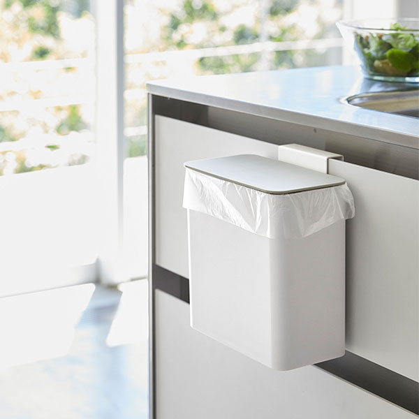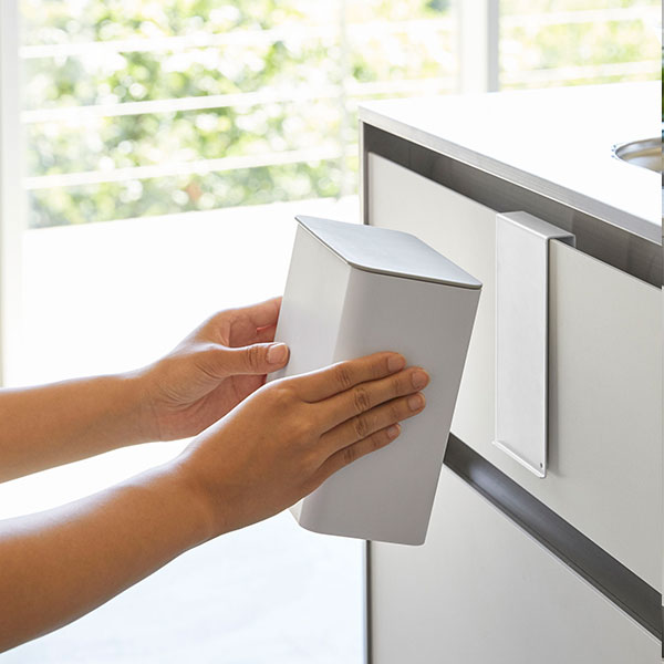 山崎実業 プレート マグネット&シンク扉ゴミ箱 ホワイト調理中に出るゴミをサッと捨てられる、小さな蓋付きごみ箱。