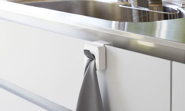 山崎実業 アクア シンク扉タオルホルダータオルや布巾を指で差し込むだけでカンタンに掛けられるフキン掛け。