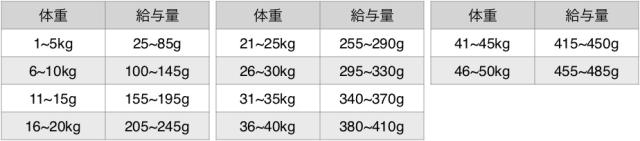 ・給餌量は生活環境や犬種・運動量・気温などにより異なります。