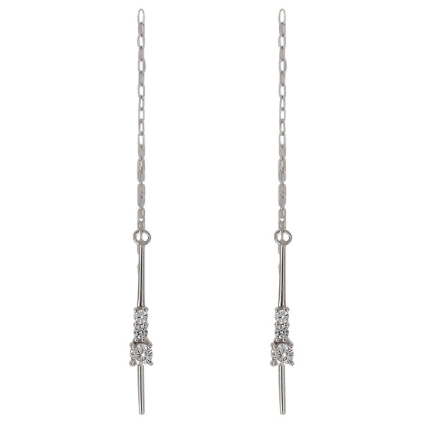 4月誕生石ダイヤモンドを使用したプラチナ製の、シンプルデザインロングピアスです。