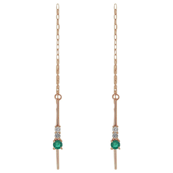 5月誕生石エメラルドを使用した10金製の、シンプルデザインロングピアスです。