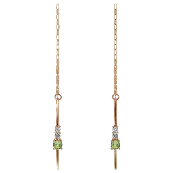 8月誕生石ペリドットを使用した10金製の、シンプルデザインロングピアスです。