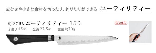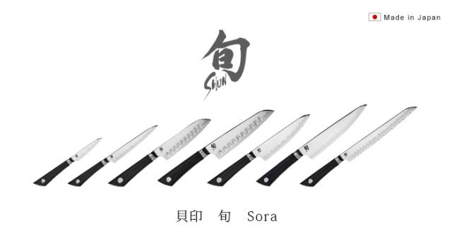 そして、この貝印の“旬”シリーズに、新たに“旬Sora”が仲間入りしました。刃体は鏡面のように研磨されたステンレス鋼と最高級素材であるVG10を独自のコンポジット技術で接合されています。高硬度、高靭性、耐摩耗性に優れ、鋭い切れ味を長く保つことができます。 また、日本刀の波紋に基づいた模様も魅力的です。伝統的な刃体仕様とは対照的に、使い心地と持続性に優れたハンドルを採用しています。カジュアルなラインながら切れ味と使い勝手は抜群です。