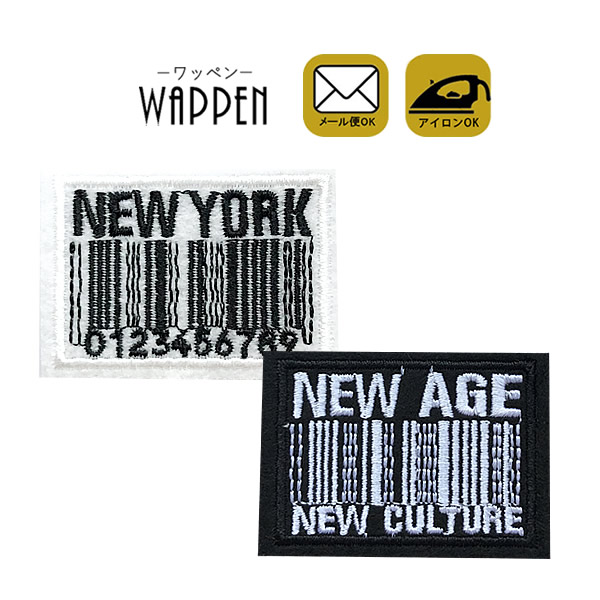 バーコード ワッペン 刺繍 アイロン接着 縦3.8cm×横5.4cm NEWYORK NEWAGE 手芸 アップリケ ロゴ デコ母の日 プレゼント ギフト