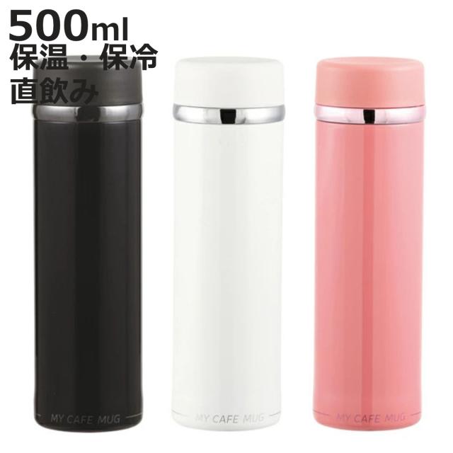 水筒 直飲み ステンレス コンパクト カフェマグスリム 500ml ( 保温 保冷 ステンレスボトル 軽量 ダイレクトボトル ボトル スリムボトル マグボトル ステンレス製 軽い おしゃれ ブラック ホワイト ピンク 黒 白 )