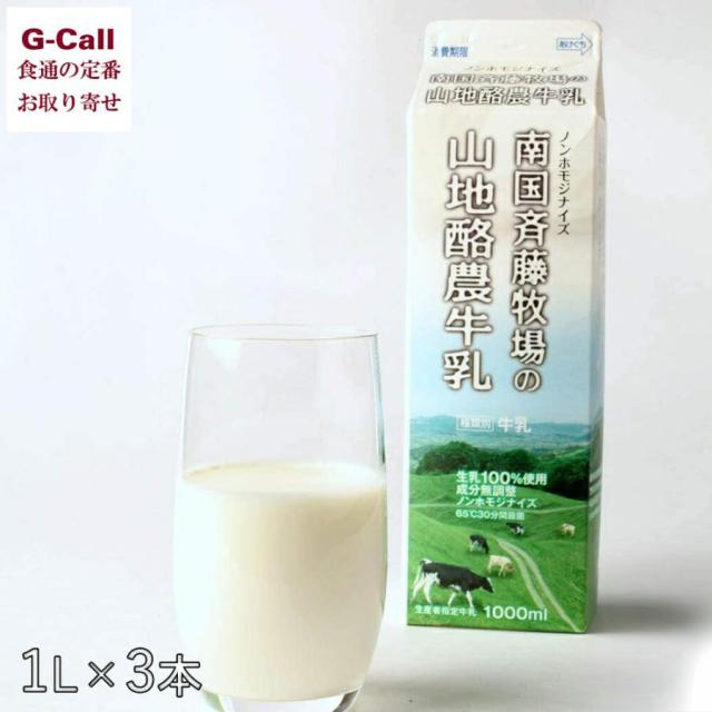 【指定日不可】斉藤牧場 南国斉藤牧場の山地酪農牛乳 1L×3本 北海道・沖縄送料別 乳製品 朝食 高知 お取り寄せ ミルク 飲料 のみもの 低温殺菌 放牧 1000ml