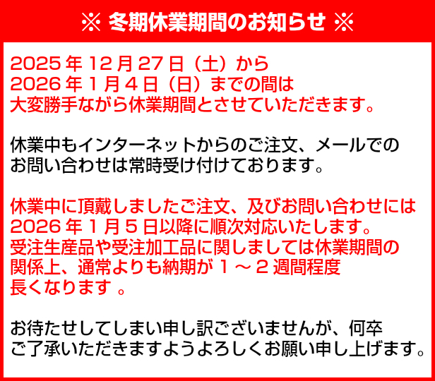 通常ご注文後1〜2営業日程度で発送いたします。(※土日祝は除きます)