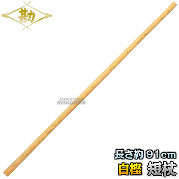 長さ3尺(約91cm)、直径8〜6.5分(約2.4〜1.95cm)、白樫製の杖道用短杖です。