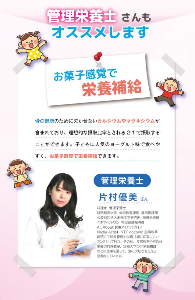 | 主要成分 | 主要成分:カルシウム、マグネシウム、ボーンペップ、ラクトフェリン、ビタミンB6、ビタミンK、ビタミンD、アルギニン、オルニチン、シトルリン |