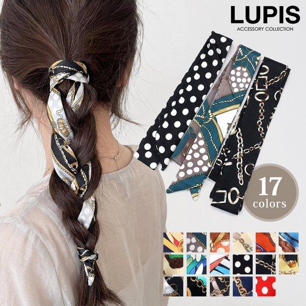スカーフ ナロースカーフ リボンスカーフ 細スカーフ バッグスカーフ サテン 細め スリム ドット レオパード チェーン フラワー おしゃれ LUPIS ルピス