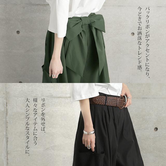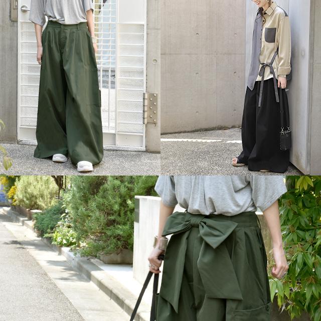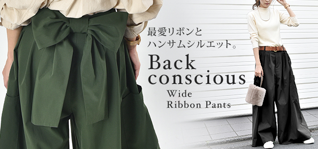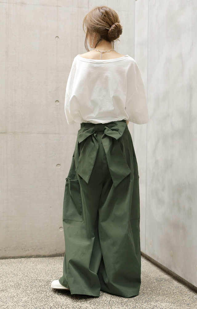 立体感のある後ろリボンと魅力のボトムパンツ。