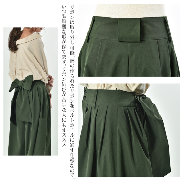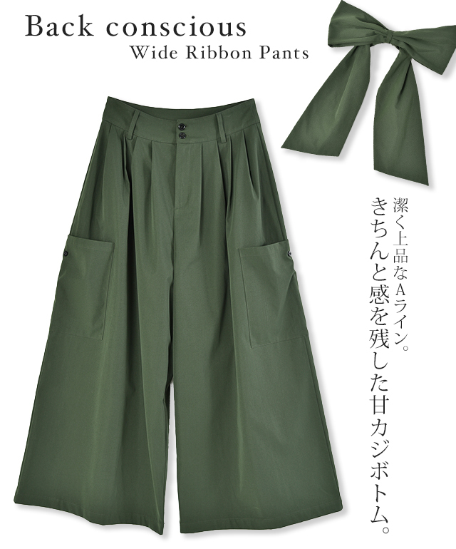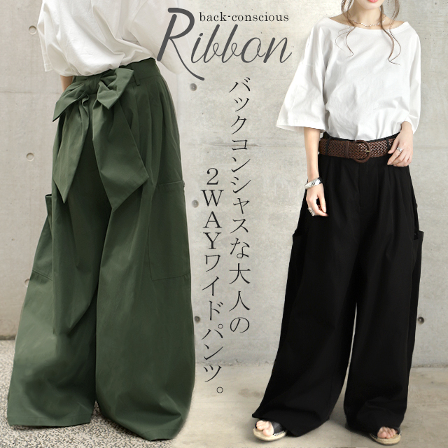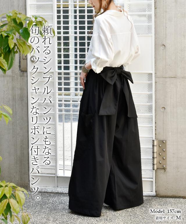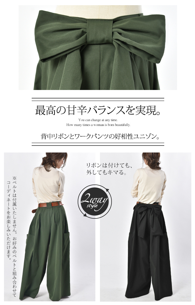 ワイドパンツ レディース ワイド タックパンツ リボン バックリボン 無地 大きいサイズ 体型カバー ロング Aライン カーゴ カーゴパンツ チノ ベイカー ベイカーパンツ ワークパンツ ワーク バギーパンツ背中リボン 冬 秋 秋新作