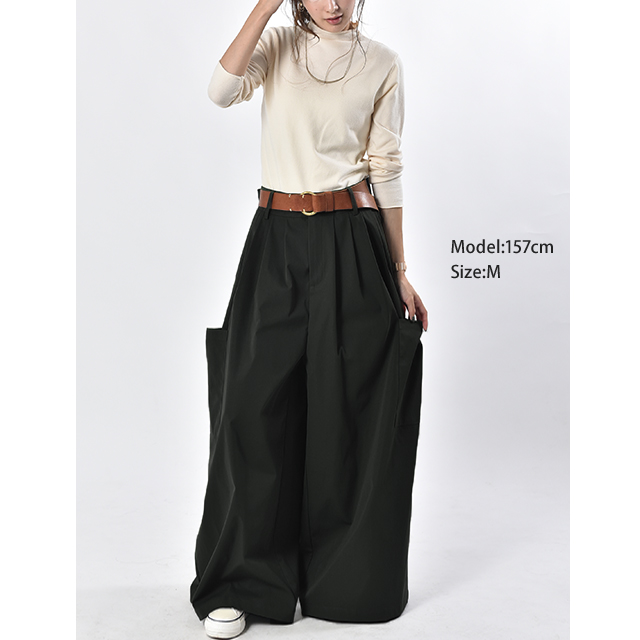 ワイドなシルエットで体型カバーにも効果的。